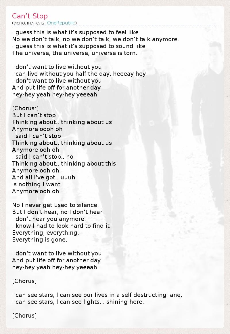 А как ты думаешь, о чем песня "Can’t Stop" ?