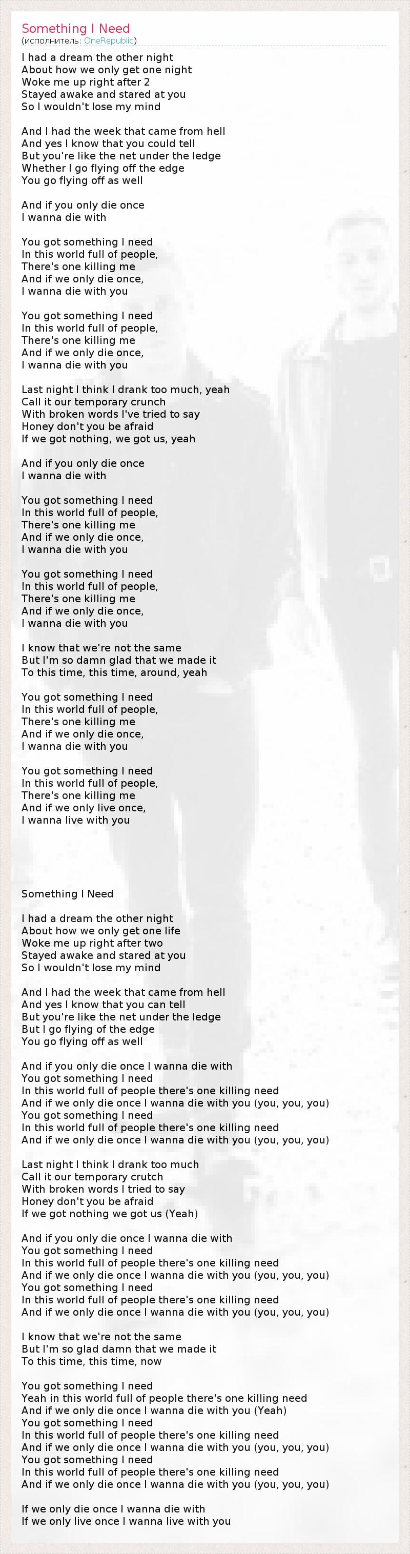 Ибо у тебя есть нечто такое, в чём я нуждаюсь.