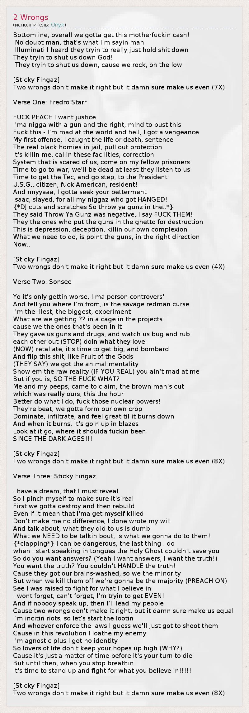 А как ты думаешь, о чем песня "2 Wrongs" ?