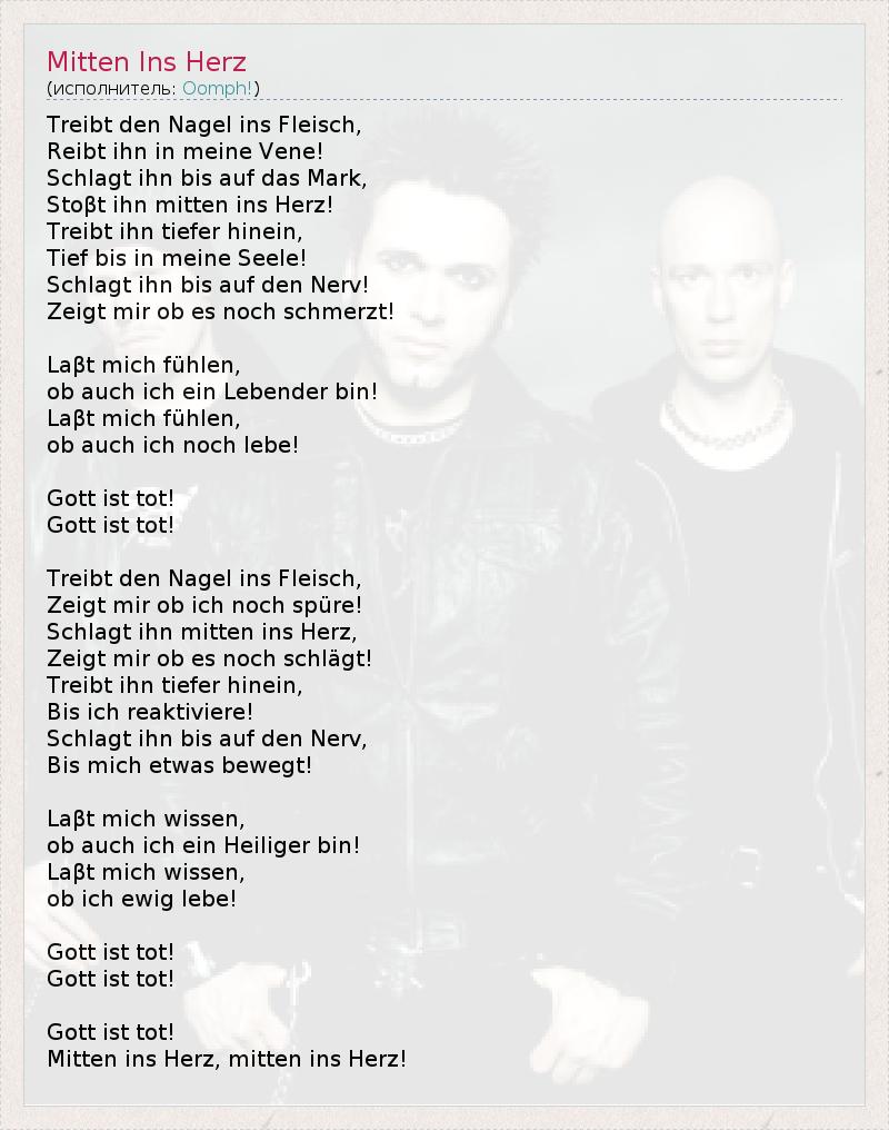 А как ты думаешь, о чем песня "Mitten Ins Herz" ?