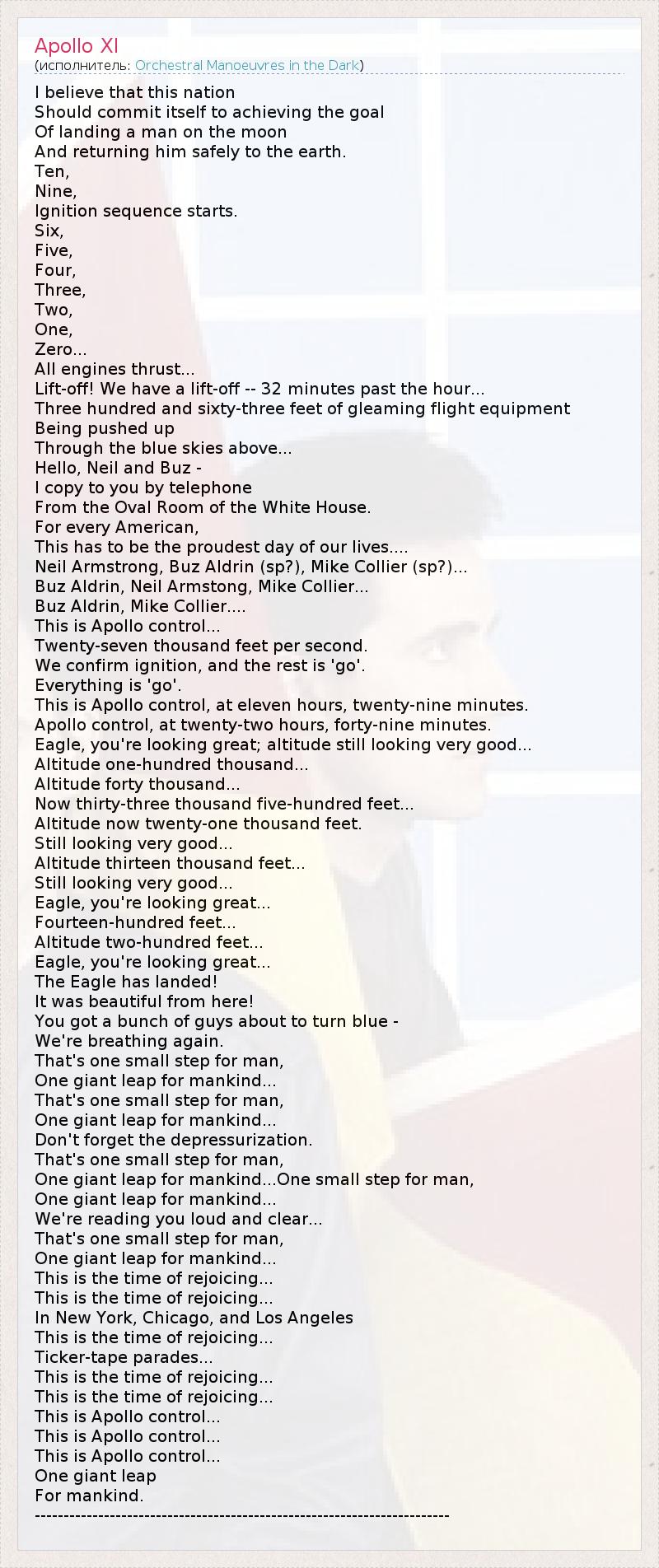 А как ты думаешь, о чем песня "Apollo XI" ?