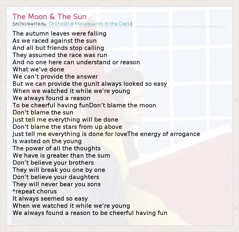 А как ты думаешь, о чем песня "The Moon & The Sun" ?
