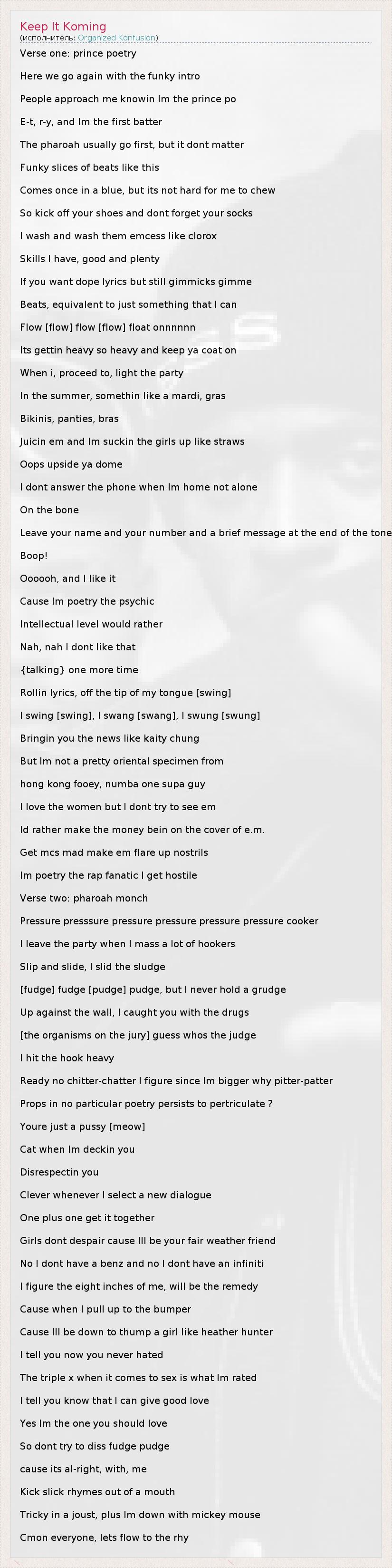 А как ты думаешь, о чем песня "Keep It Koming" ?