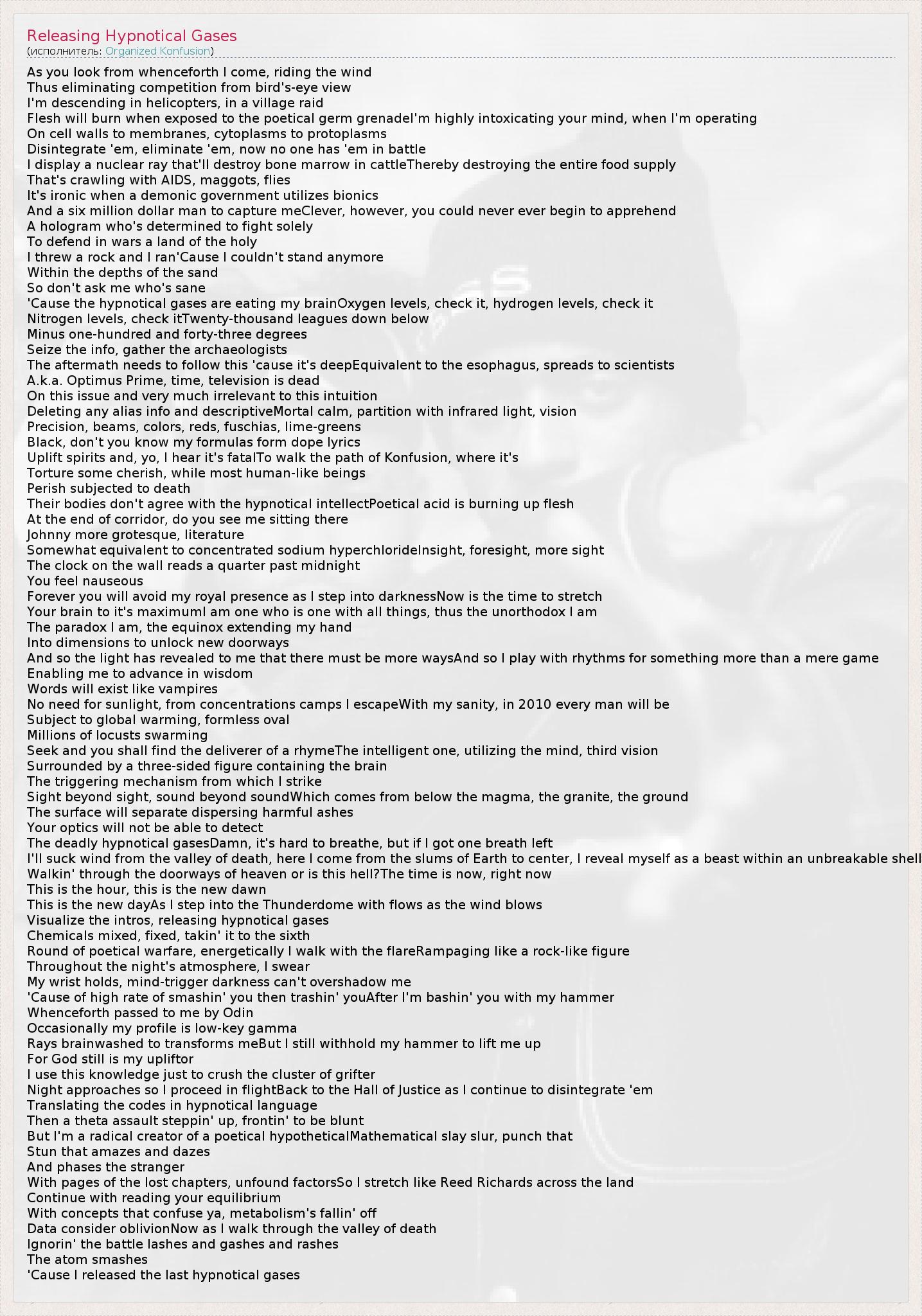 А как ты думаешь, о чем песня "Releasing Hypnotical Gases" ?