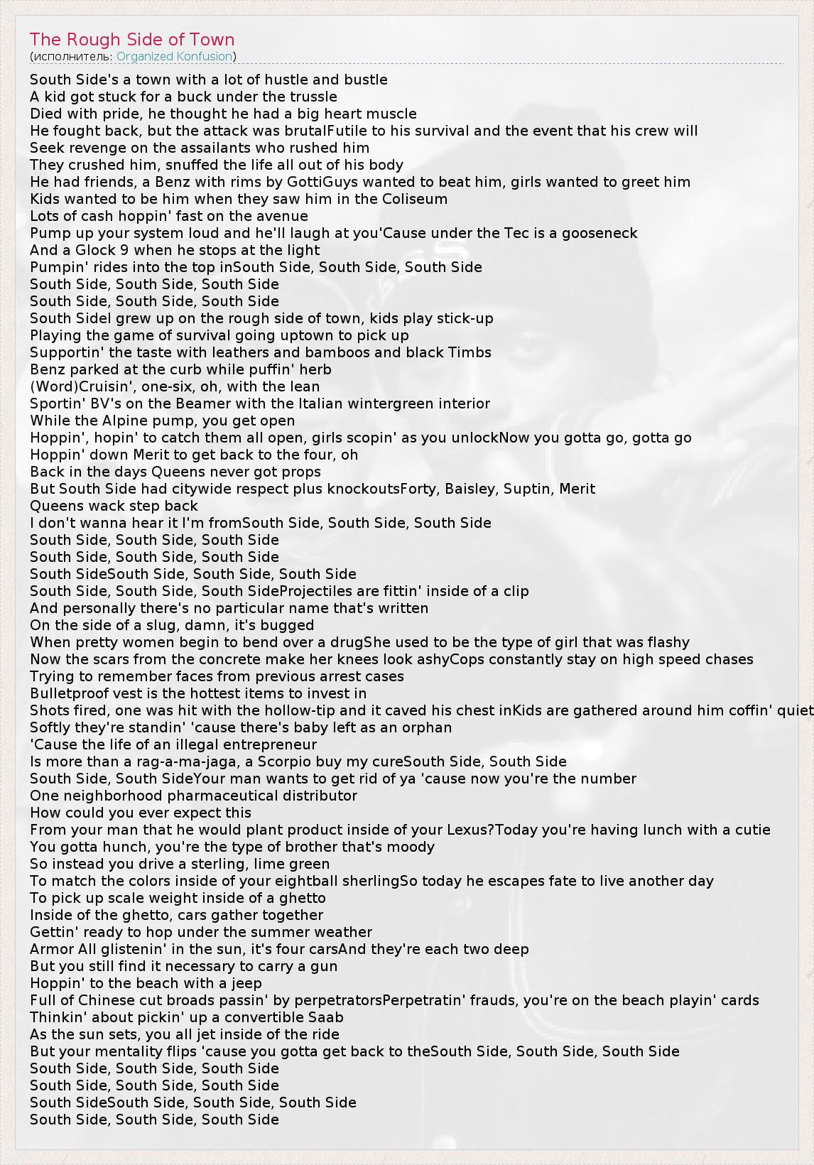 А как ты думаешь, о чем песня "The Rough Side of Town" ?
