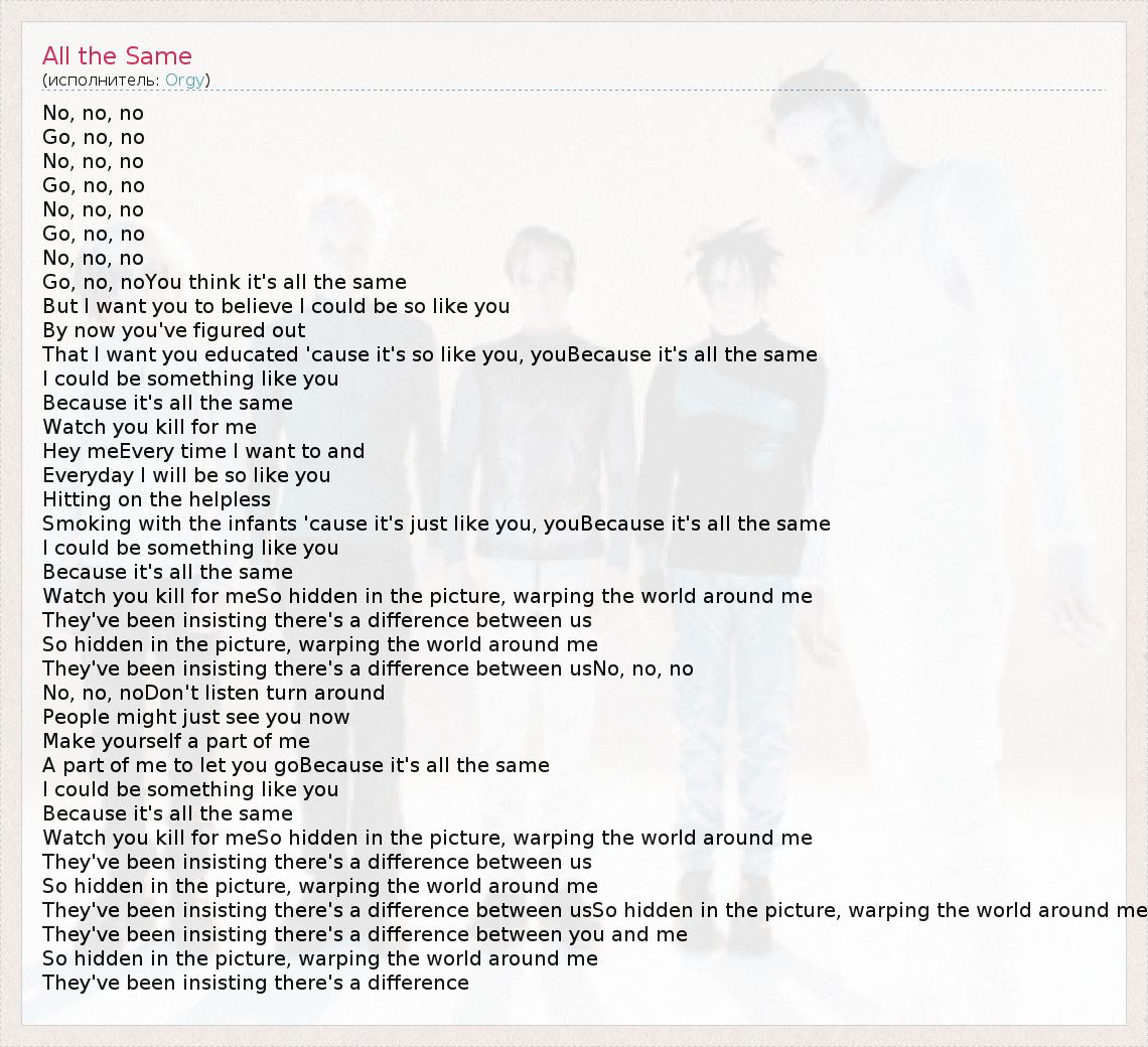 А как ты думаешь, о чем песня "All the Same" ?