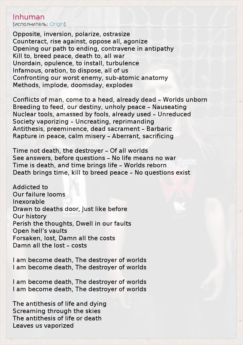 Смерть приносит время, убить разводить мир - не существует никаких вопросов