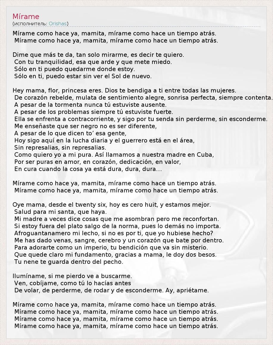 Mírame como hace ya, mamita, mírame como hace un tiempo atrás.