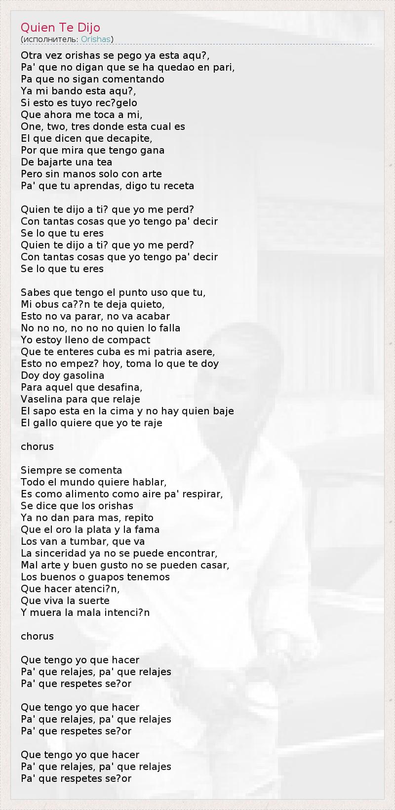 А как ты думаешь, о чем песня "Quien Te Dijo" ?