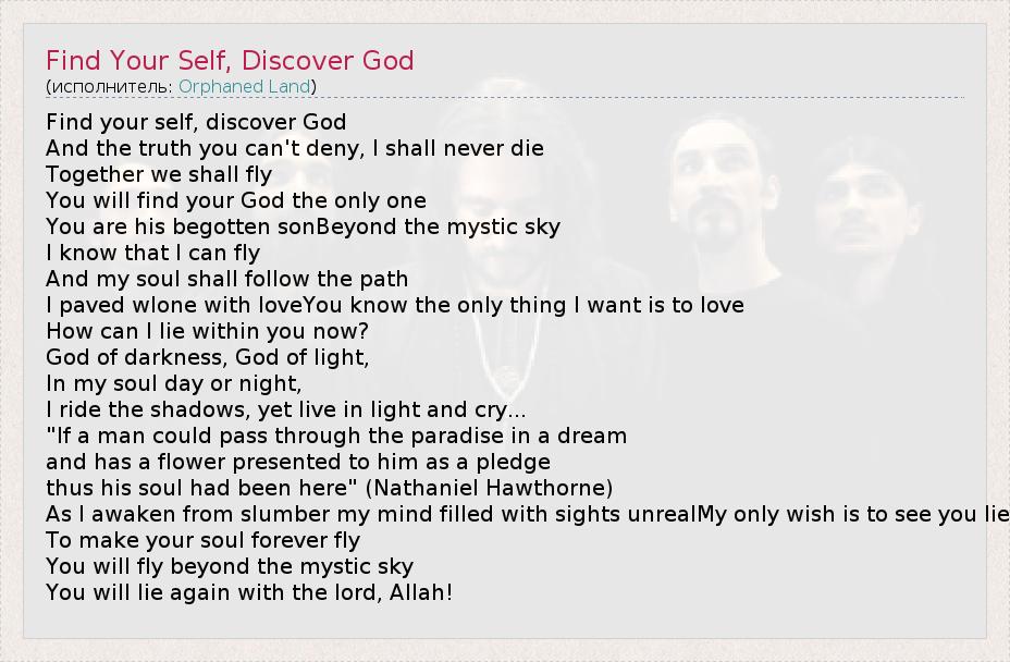 А как ты думаешь, о чем песня "Find Your Self, Discover God" ?