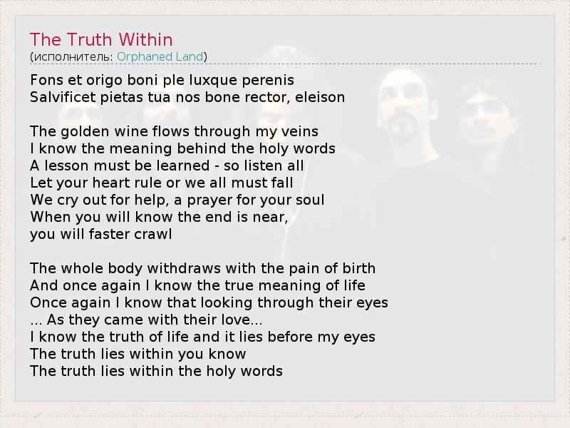 А как ты думаешь, о чем песня "The Truth Within" ?
