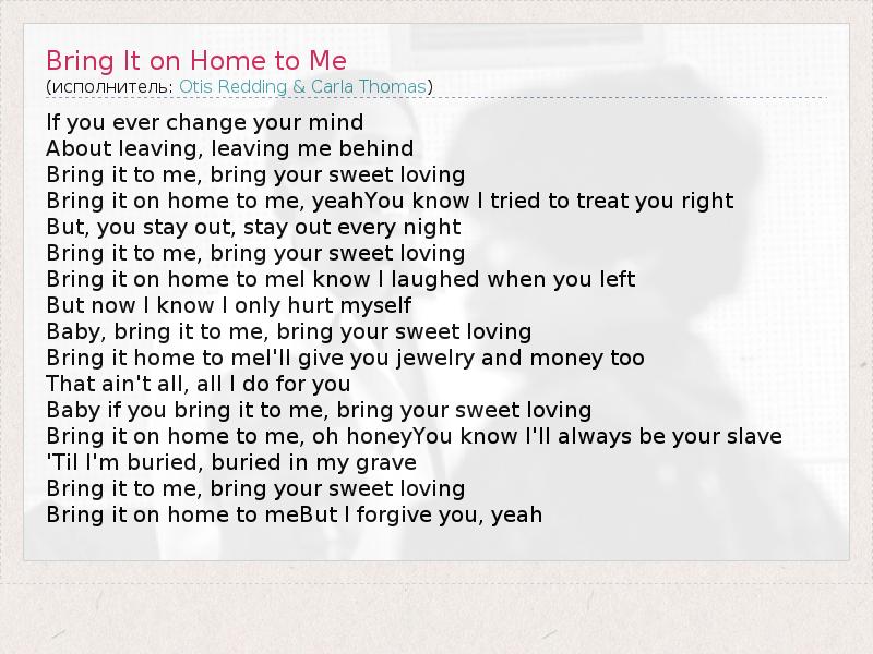 А как ты думаешь, о чем песня "Bring It on Home to Me" ?