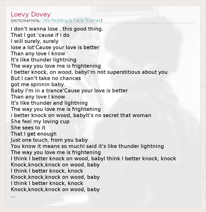 А как ты думаешь, о чем песня "Loevy Dovey" ?