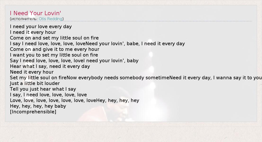 А как ты думаешь, о чем песня "I Need Your Lovin'" ?