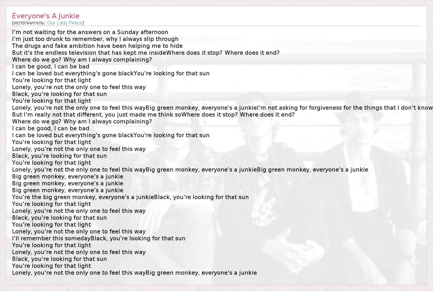 А как ты думаешь, о чем песня "Everyone's A Junkie" ?