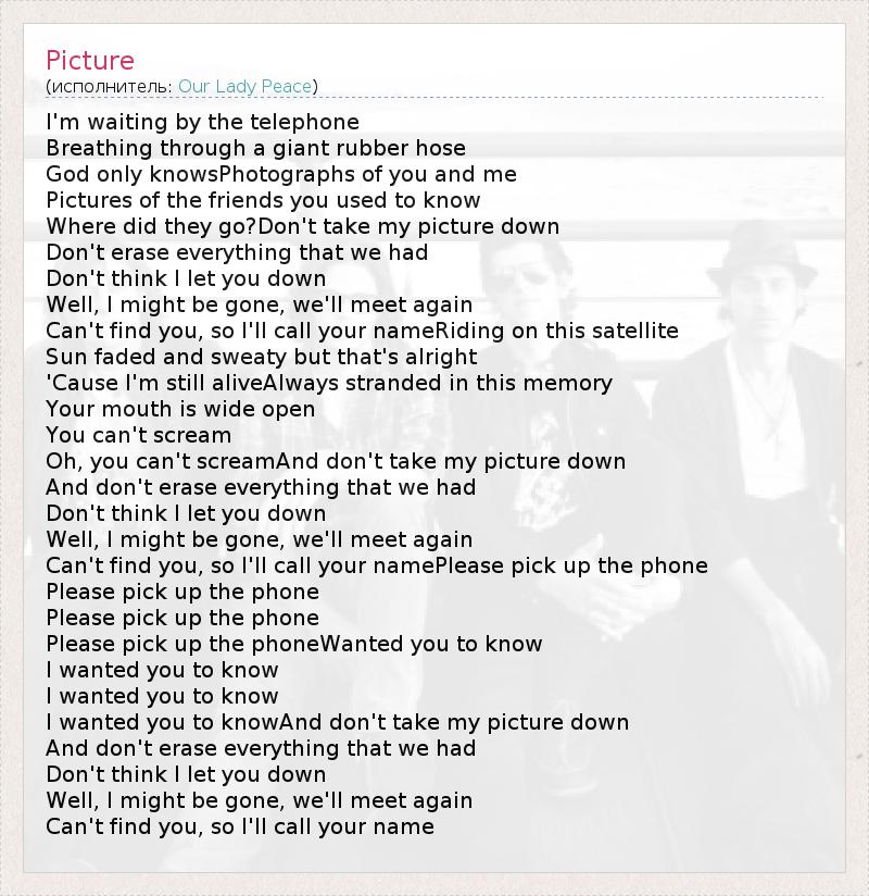 Это интересно:Группа Our Lady Peace, которая уже пережила смену гитариста (на место Майка Тернера (Mike Turner) пришел Стив Мазур (Steve Mazur)) и бесконечные дни гастрольных турне до сих пор полна сил, интересных идей и энтузиазма, несмотря на 11 лет, прошедшие с момента образования группы. Команда, начинавшая также, как и многие другие неопытные юнцы, не обращала внимание на всякую ерунду и смогла завоевать любовь фанатов... продолжение