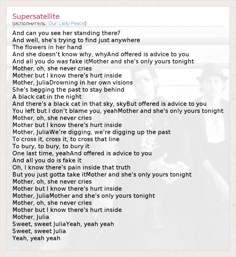 А как ты думаешь, о чем песня "Supersatellite" ?