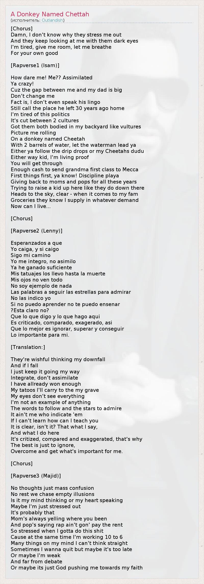 ГлавнаяИсполнителиOutlandishA Donkey Named Chettah