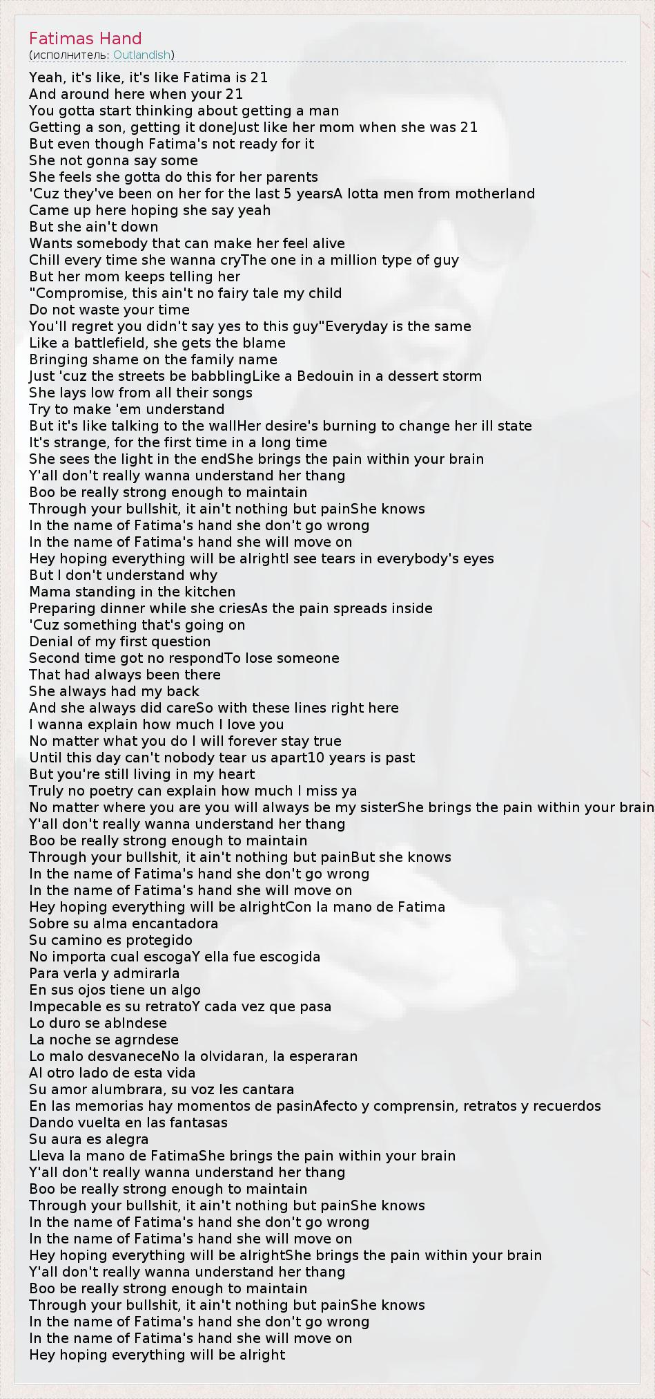 А как ты думаешь, о чем песня "Fatimas Hand" ?