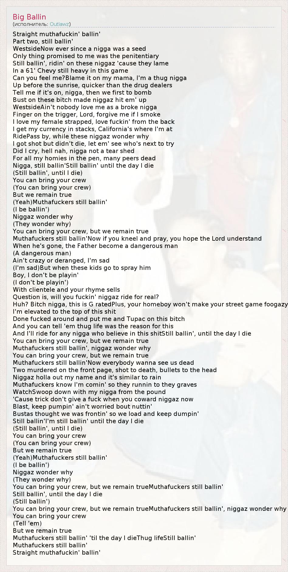 Nigga, still ballin'Still ballin' until the day I die