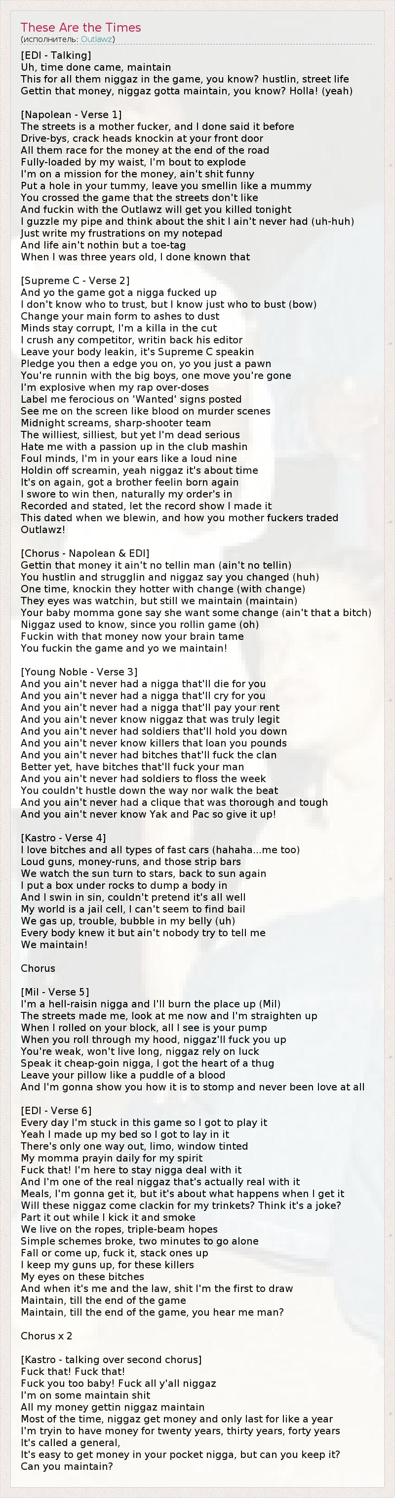 And you ain't never know niggaz that was truly legit