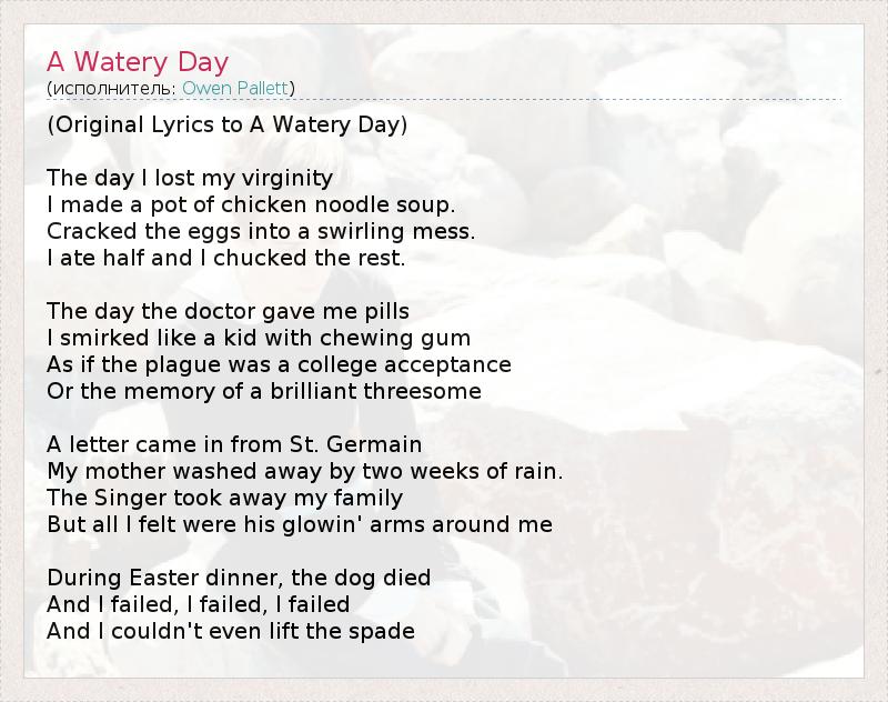 А как ты думаешь, о чем песня "A Watery Day" ?