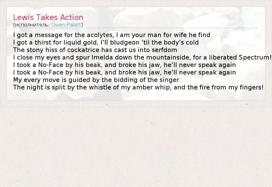 А как ты думаешь, о чем песня "Lewis Takes Action" ?