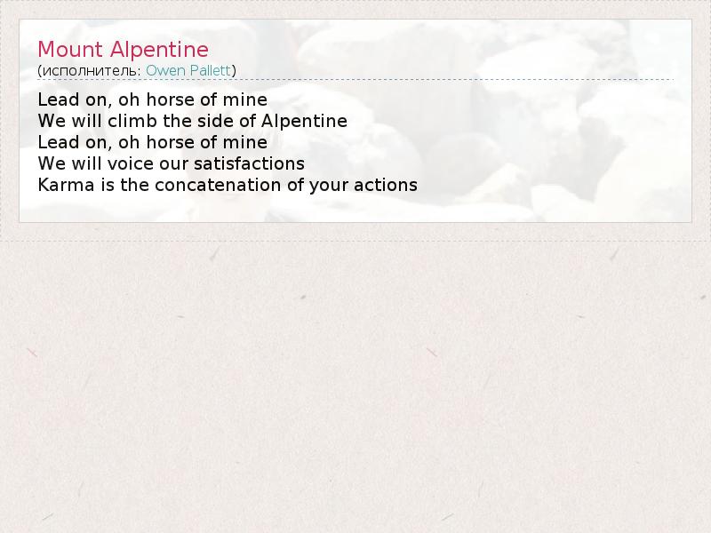 А как ты думаешь, о чем песня "Mount Alpentine" ?