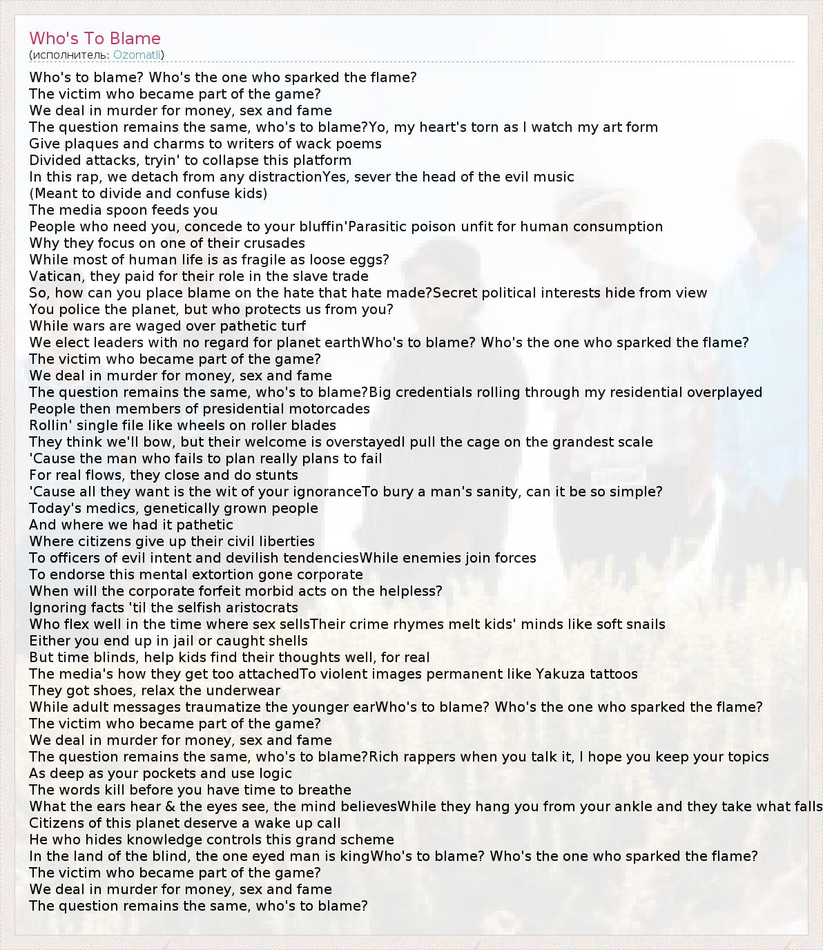 А как ты думаешь, о чем песня "Who's To Blame" ?