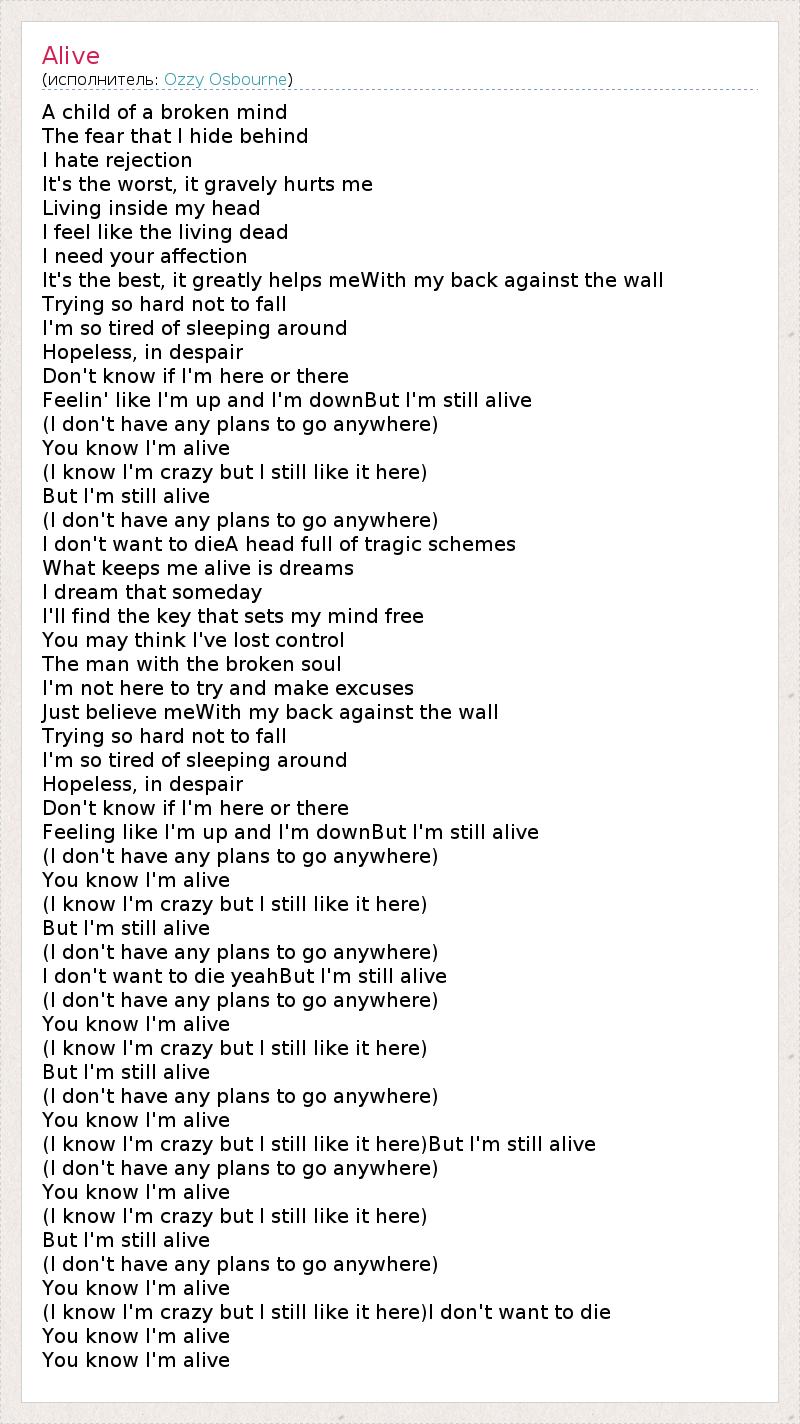 (I know I'm crazy but I still like it here)But I'm still alive