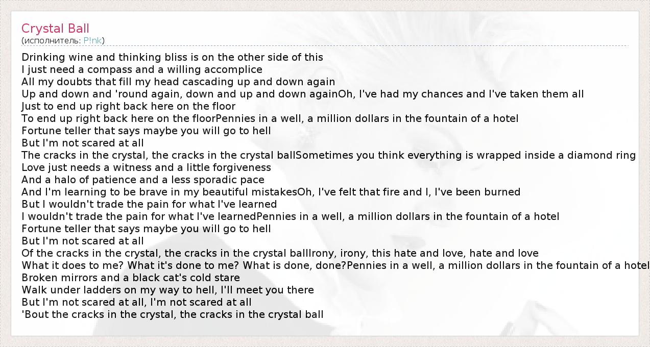 А как ты думаешь, о чем песня "Crystal Ball" ?