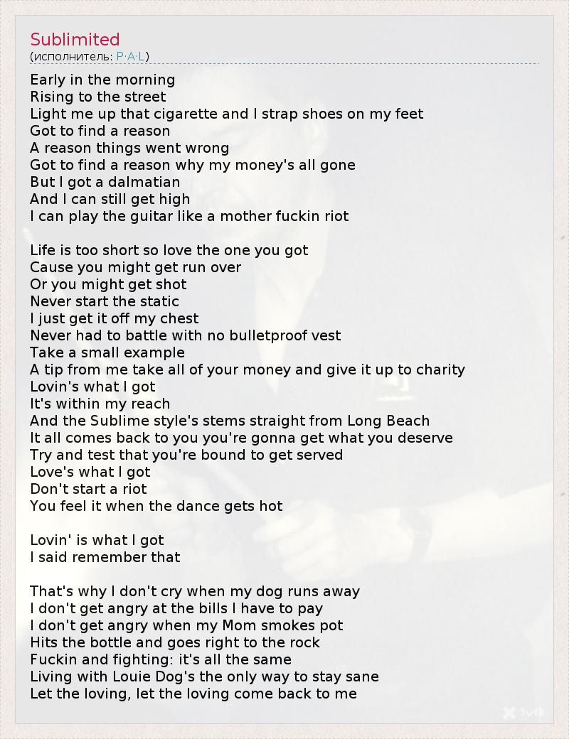 1 – Имеется в виду город Лонг-Бич в Калифорнии, где сформировалась группа Sublime.