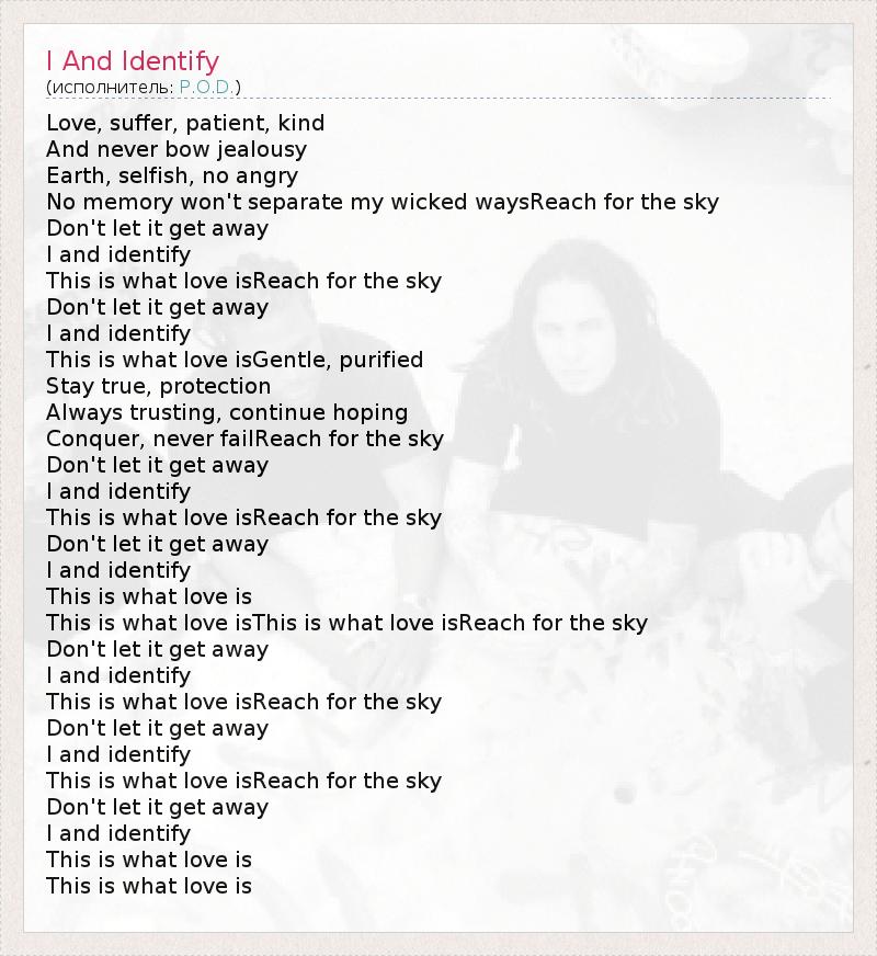 А как ты думаешь, о чем песня "I And Identify" ?
