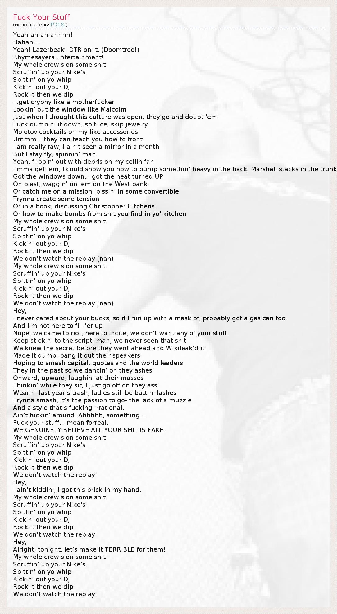 А как ты думаешь, о чем песня "Fuck Your Stuff" ?