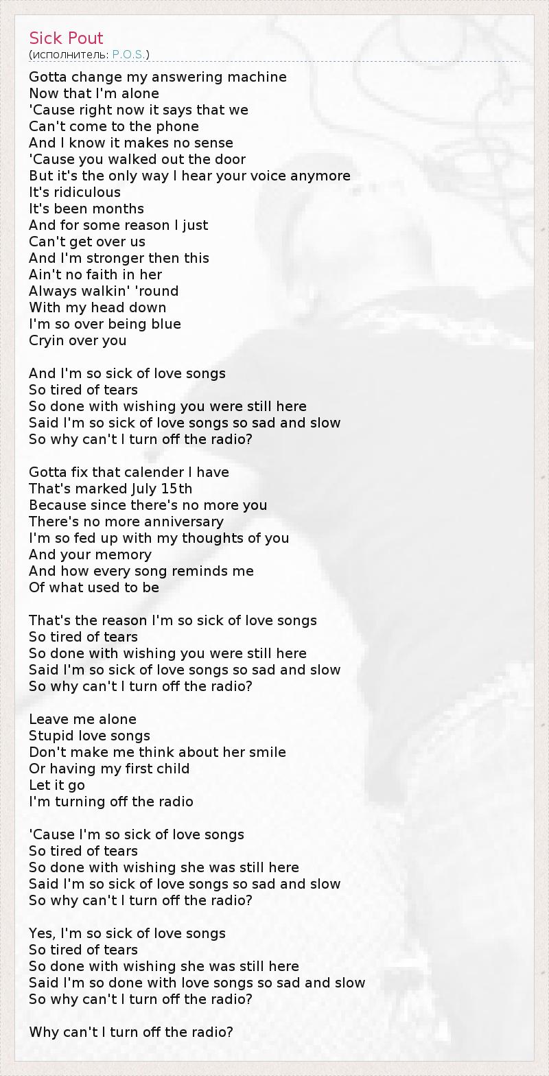 And I'm so sick of love songs