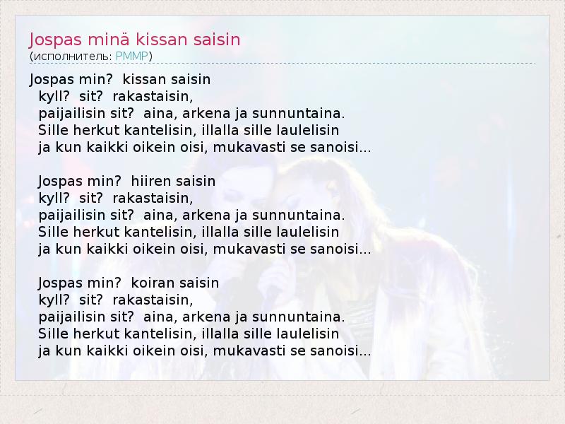А как ты думаешь, о чем песня "Jospas minä kissan saisin" ?
