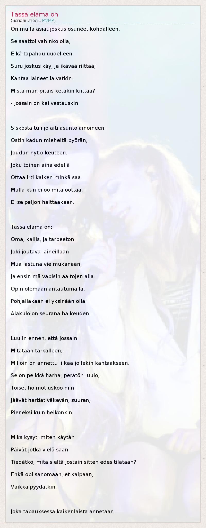 ГлавнаяИсполнителиPMMPTässä elämä on