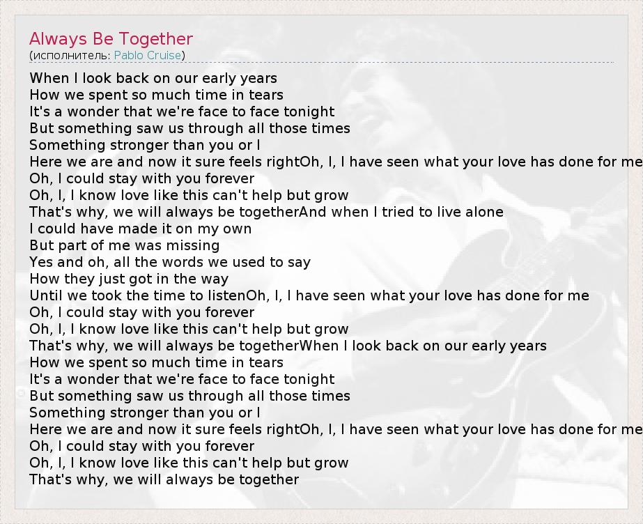 А как ты думаешь, о чем песня "Always Be Together" ?