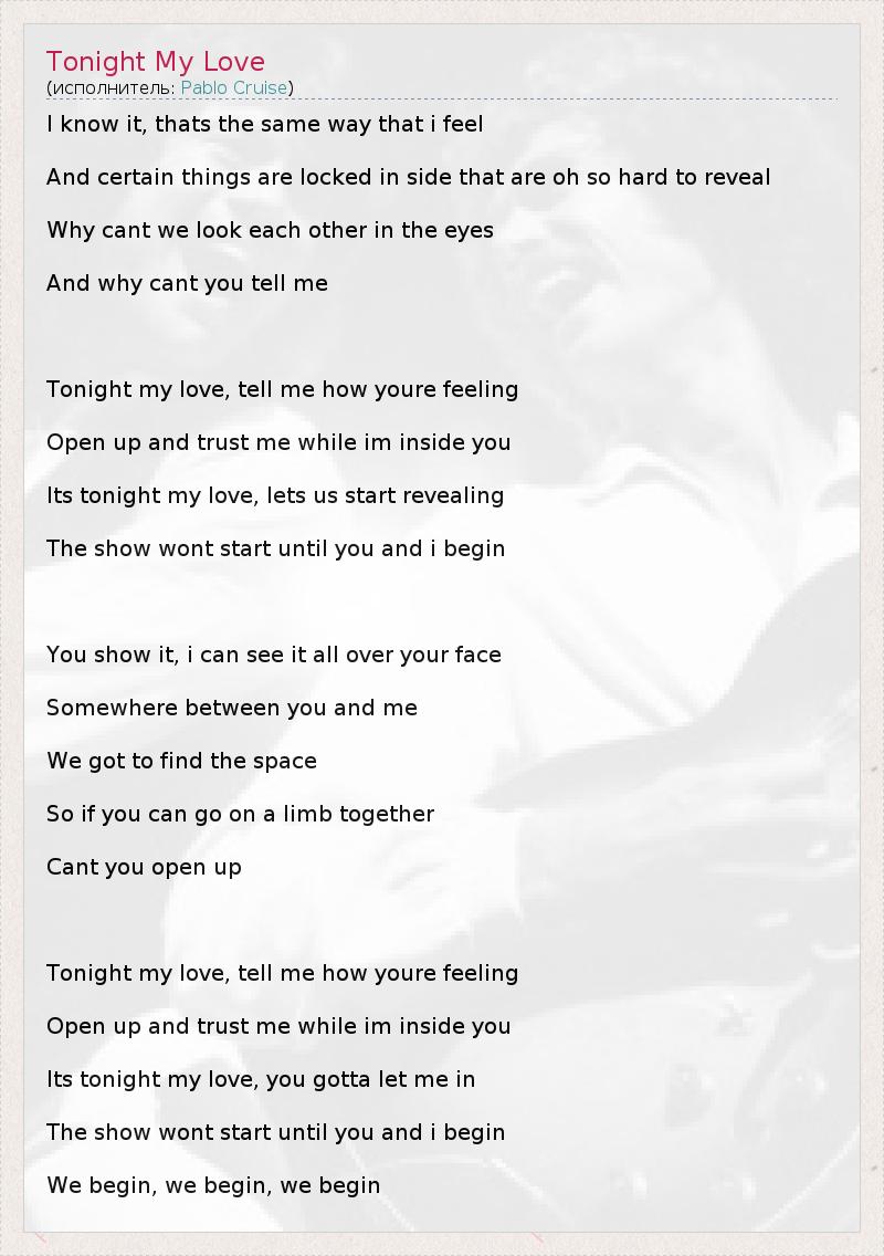 А как ты думаешь, о чем песня "Tonight My Love" ?