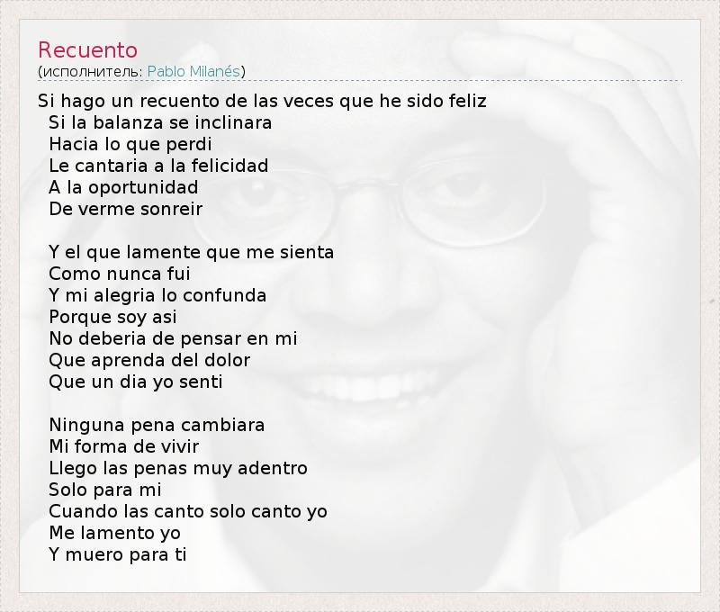 Это интересно:Па́бло Милане́с Ариас (исп. Pablo Milanés Arias; 24 февраля 1943, Баямо, Куба) — кубинский композитор, поэт, гитарист и певец, один из основателей (наряду с Сильвио Родригесом и Ноэлем Николой) кубинского музыкального движения «нуэва трова». Закончил Гаванскую консерваторию.Начинал как исполнитель песен в стиле feeling. В дальнейшем работал в разных музыкальных стилях, как традиционных для кубинской... продолжение