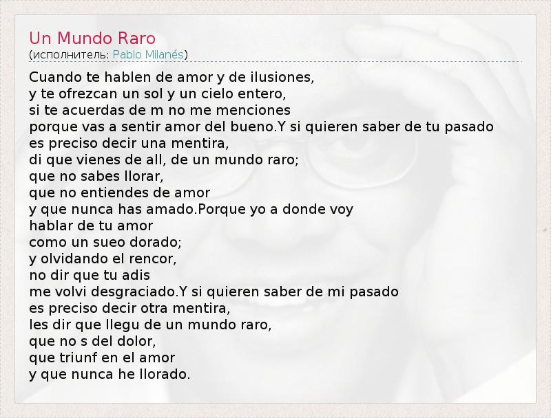 А как ты думаешь, о чем песня "Un Mundo Raro" ?
