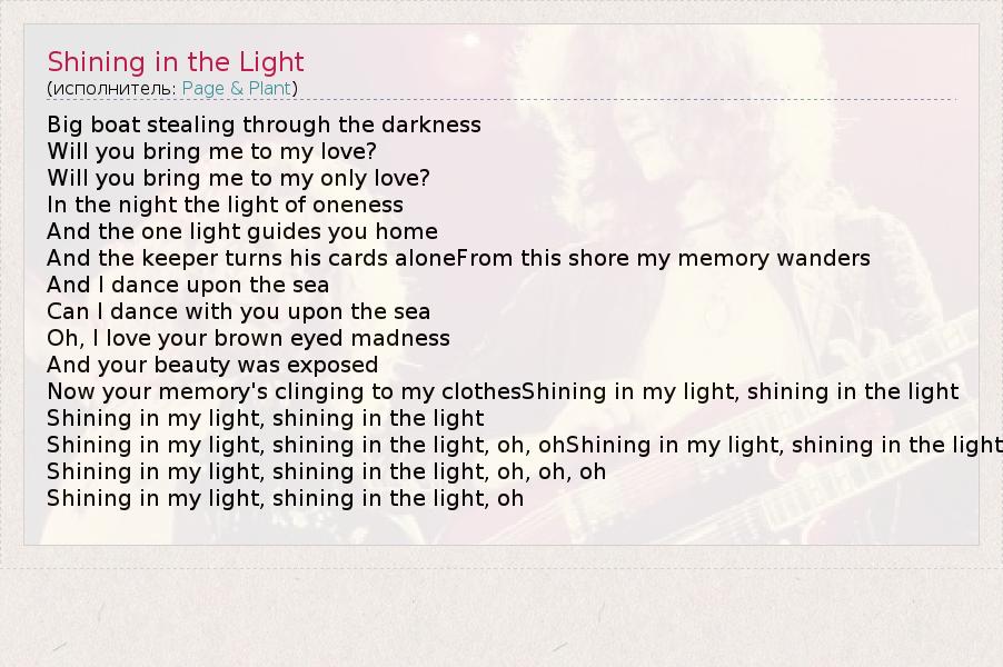 А как ты думаешь, о чем песня "Shining in the Light" ?