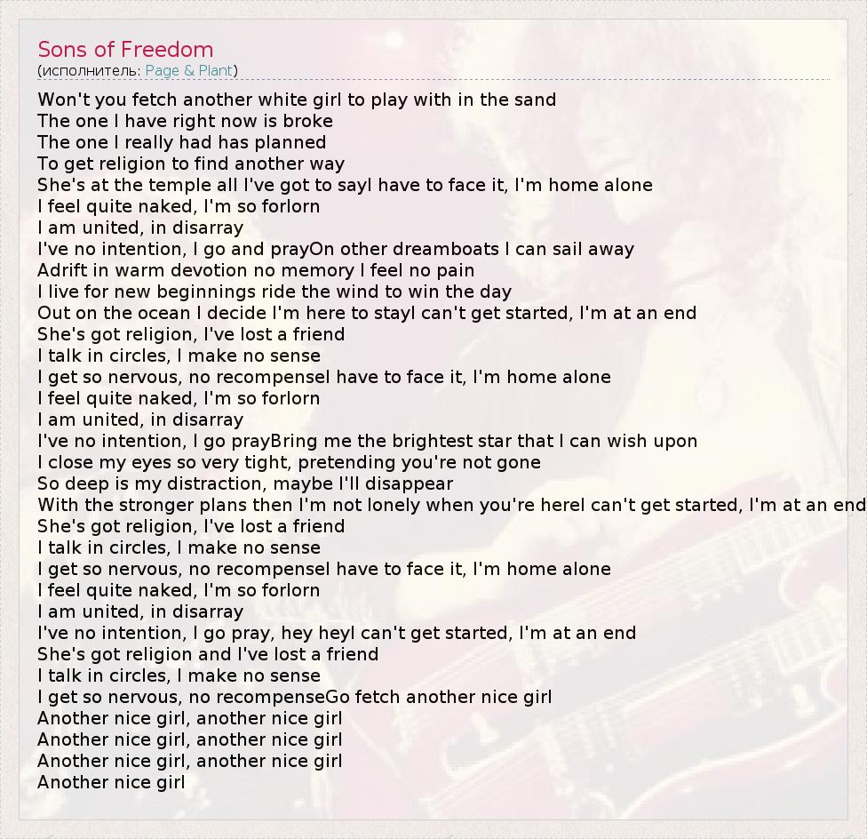 А как ты думаешь, о чем песня "Sons of Freedom" ?
