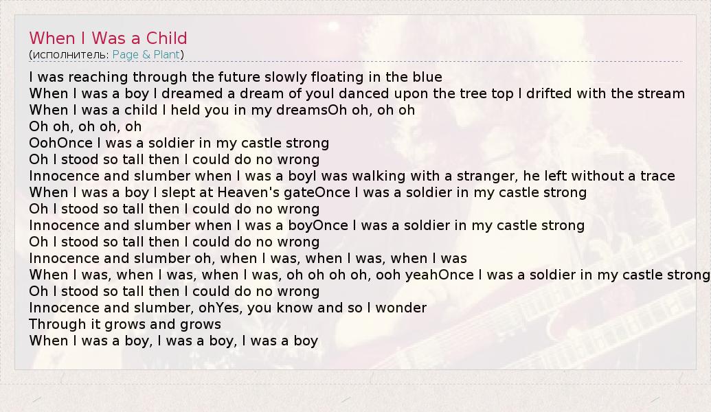 А как ты думаешь, о чем песня "When I Was a Child" ?