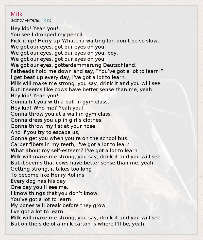 А как ты думаешь, о чем песня "Milk" ?
