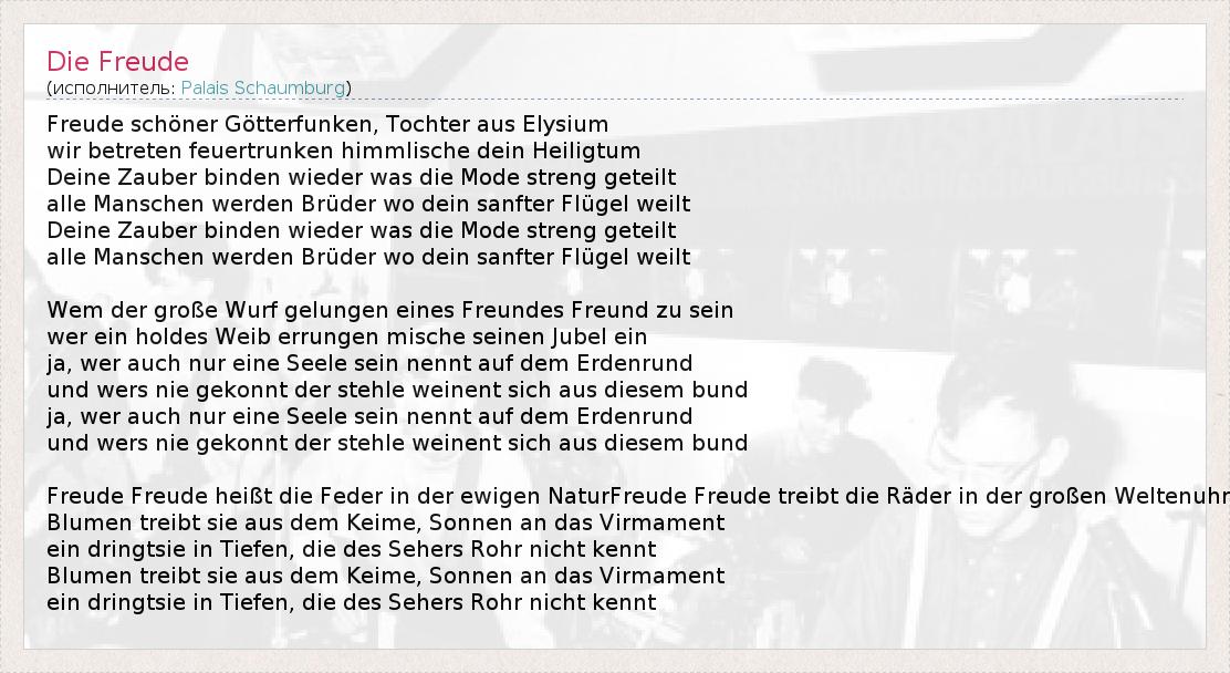 Freude Freude heißt die Feder in der ewigen NaturFreude Freude treibt die Räder in der großen Weltenuhr