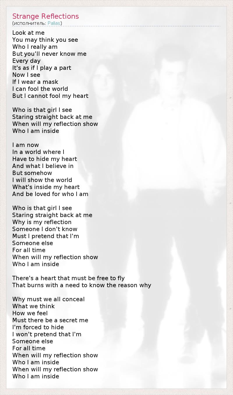 А как ты думаешь, о чем песня "Strange Reflections" ?