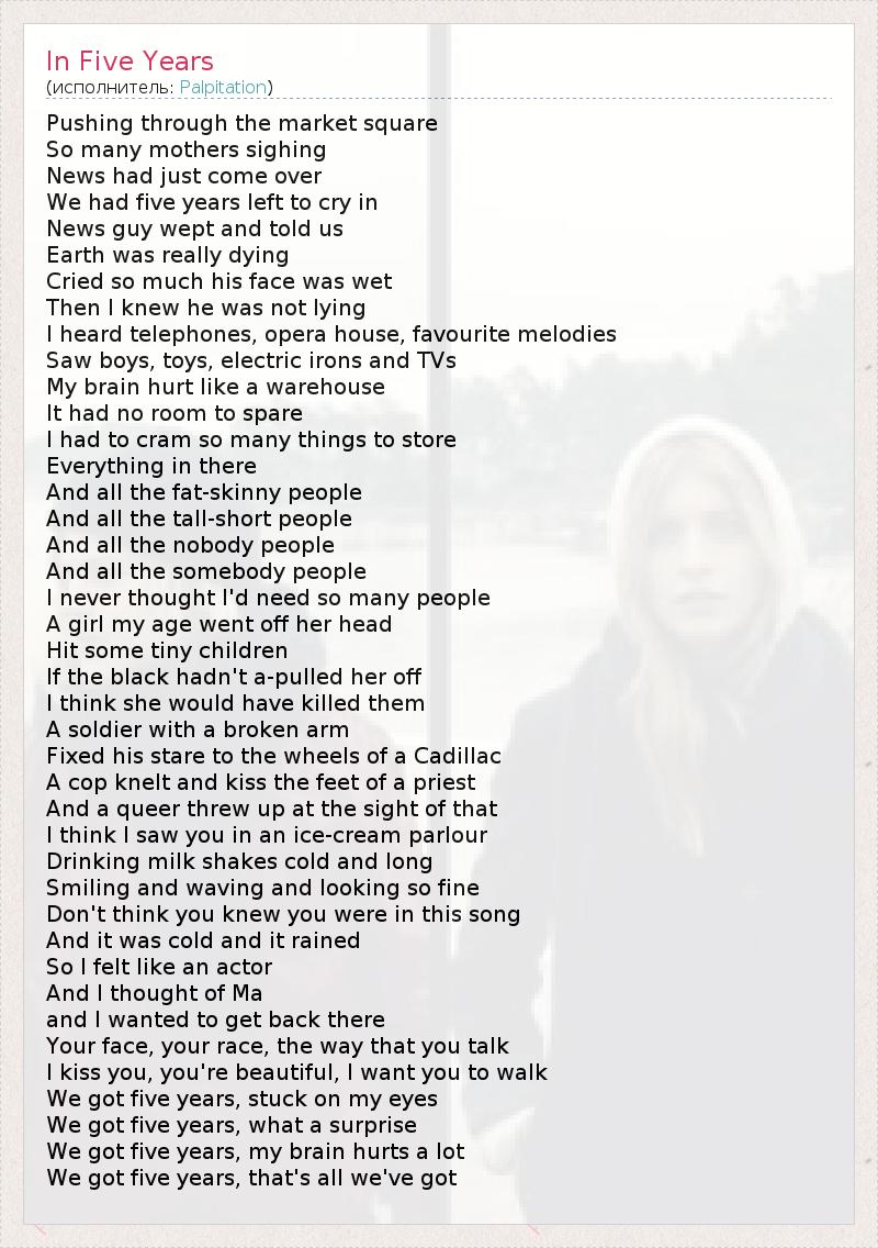 У нас есть пять лет, мой разум сильно напуган/изранен