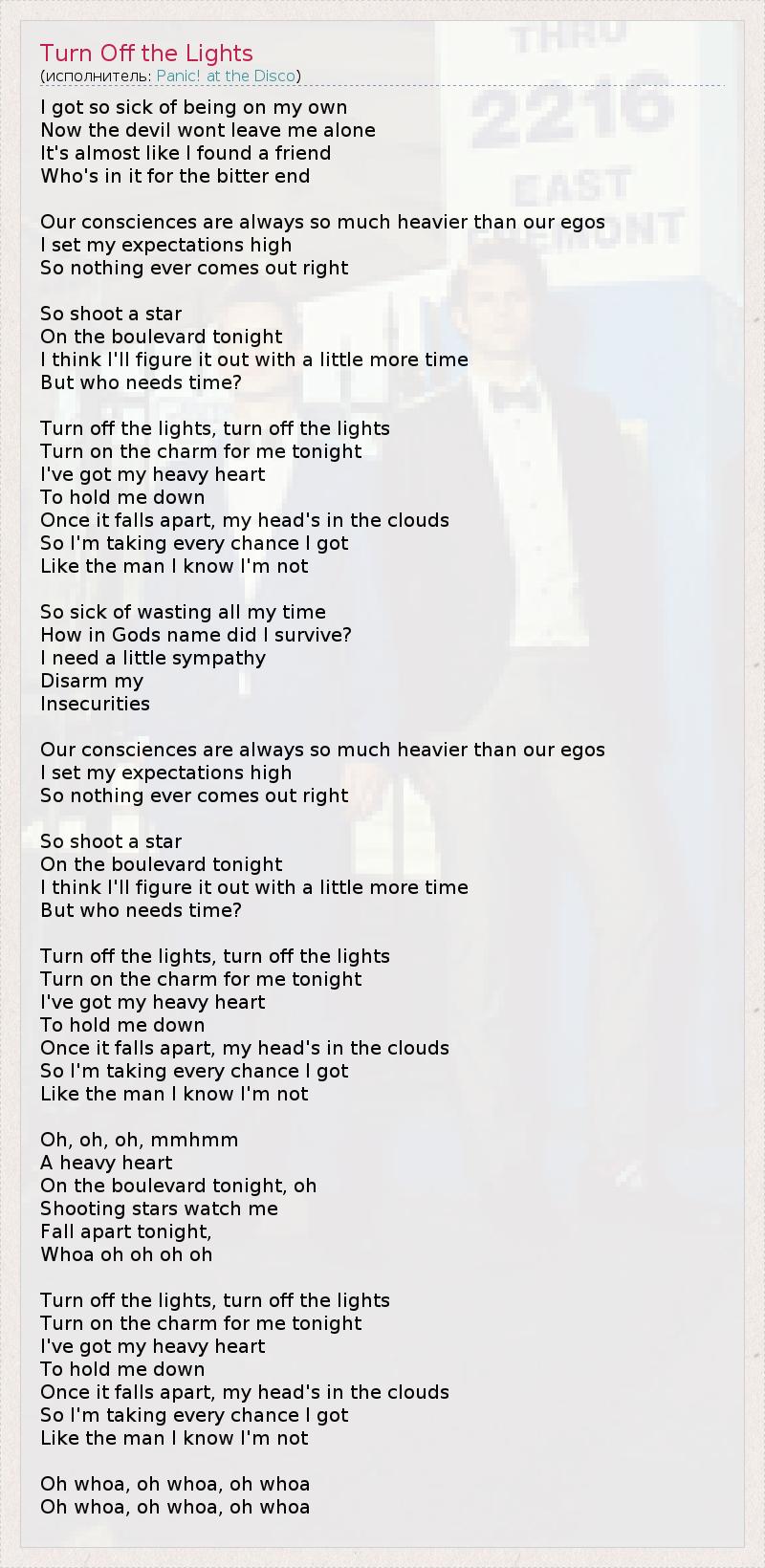 А как ты думаешь, о чем песня "Turn Off the Lights" ?