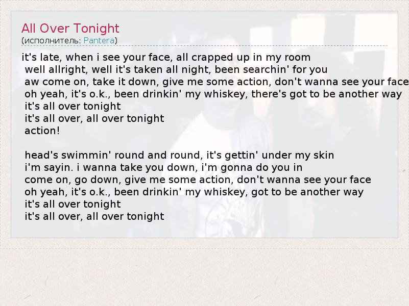 А как ты думаешь, о чем песня "All Over Tonight" ?